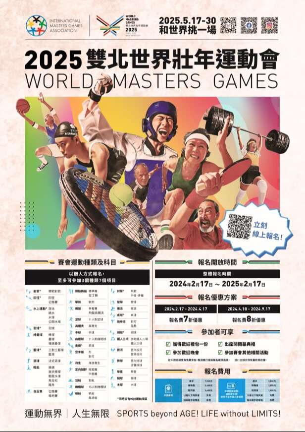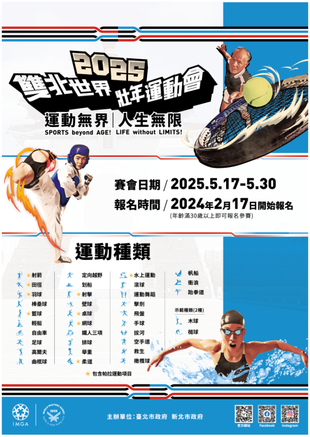 三、2025年雙北世壯運業於本(113)年2月17日開放選手報名 參賽,報名期限至114年2月17日止。