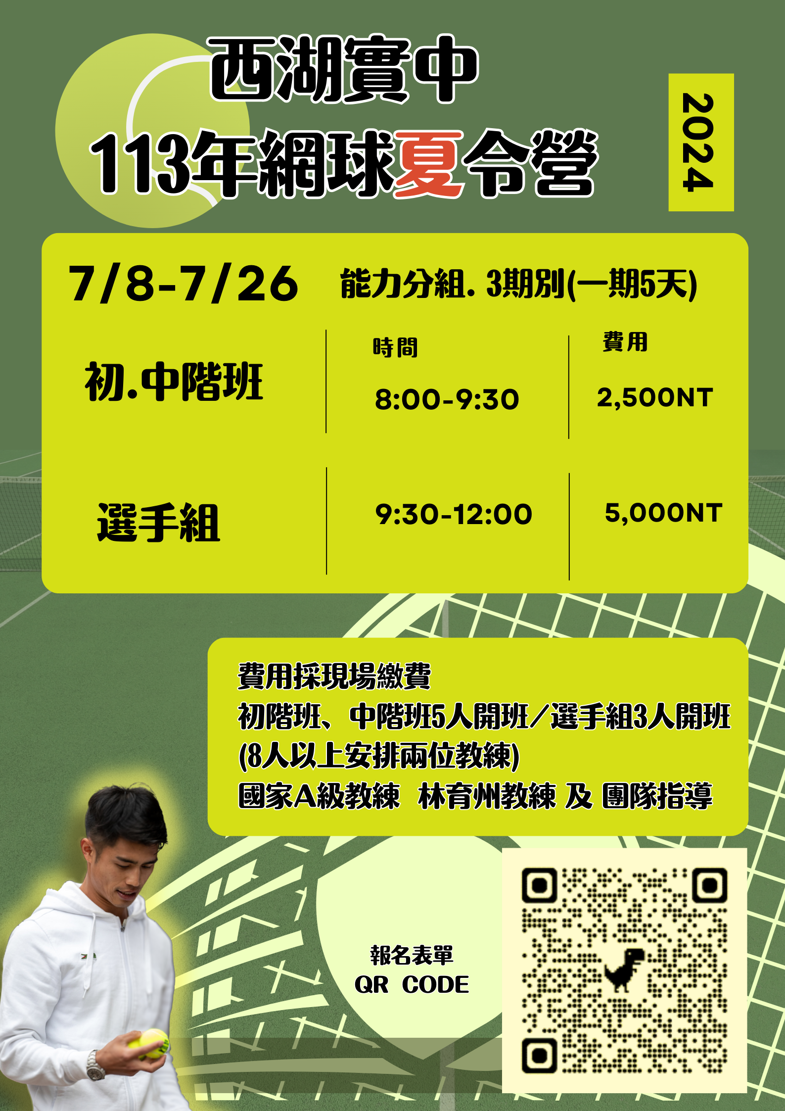 二、檢附本校113年度網球夏令營活動實施計畫暨報名表、活動 DM各1份。