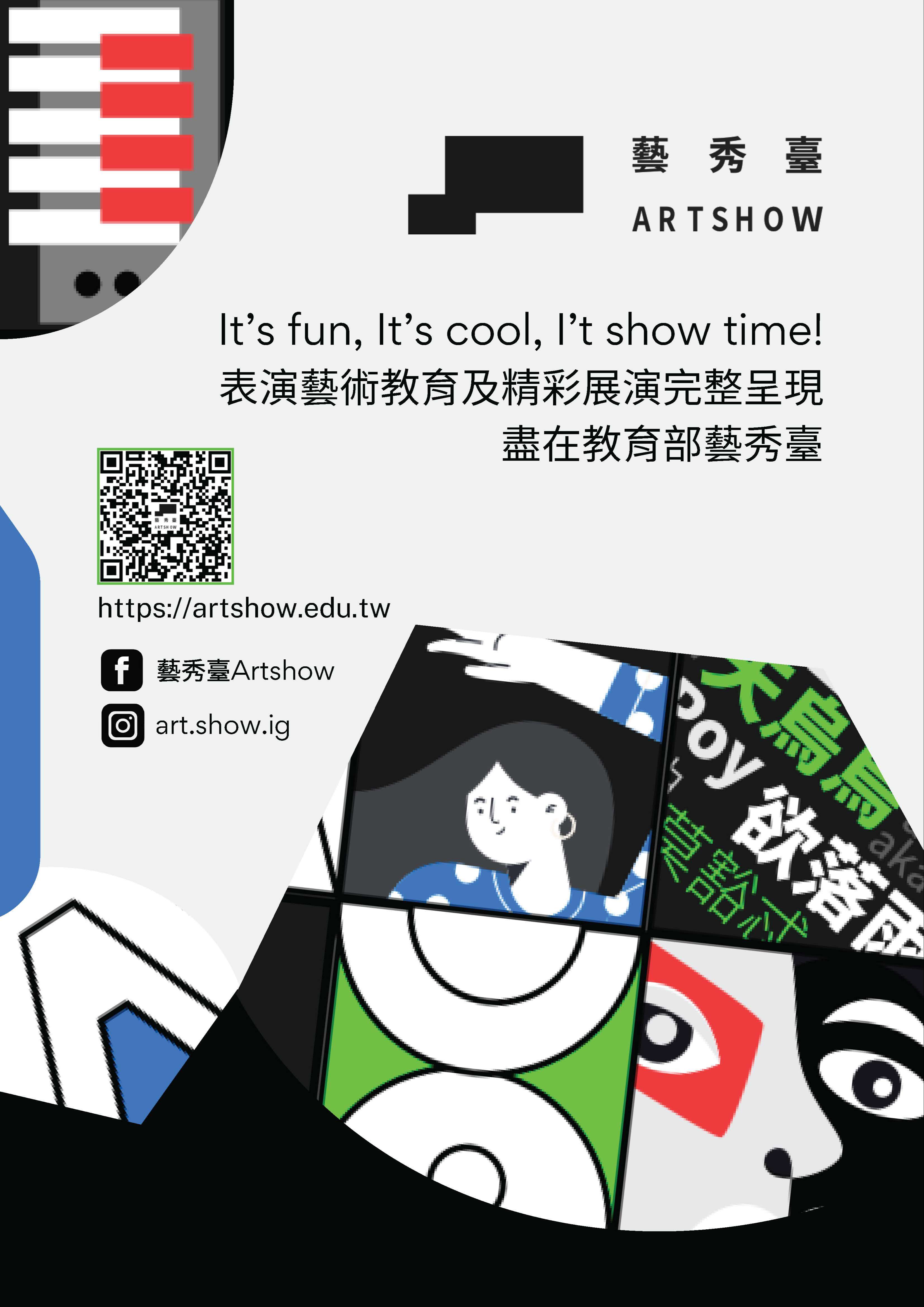 「藝秀臺」徵集全國各級學校表演藝術影音作品並提供相 關延伸學習內容,涵蓋音樂、舞蹈、創意戲劇、鄉土歌謠 四大類,自110年開臺迄今收錄350部豐富多元之影音內 容,可供師生及大眾線上欣賞演出,並作為延伸教學應 用。