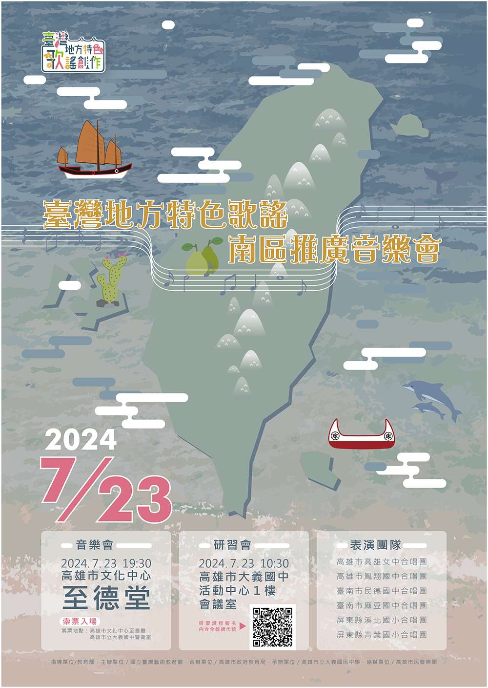 (二)音樂會 1、時間:113年7月23日(星期二)晚上7:30~9:30。 2、地點:高雄文化中心至德堂(高雄市苓雅區五福一路 67號)。 3、聯絡電話:07-2225136,索票入場(請洽高雄市文化 中心至善廳或高雄市大義國中警衛室),每人限索4 張,每日上午9:00~下午5:00開放索票,額滿為止。
