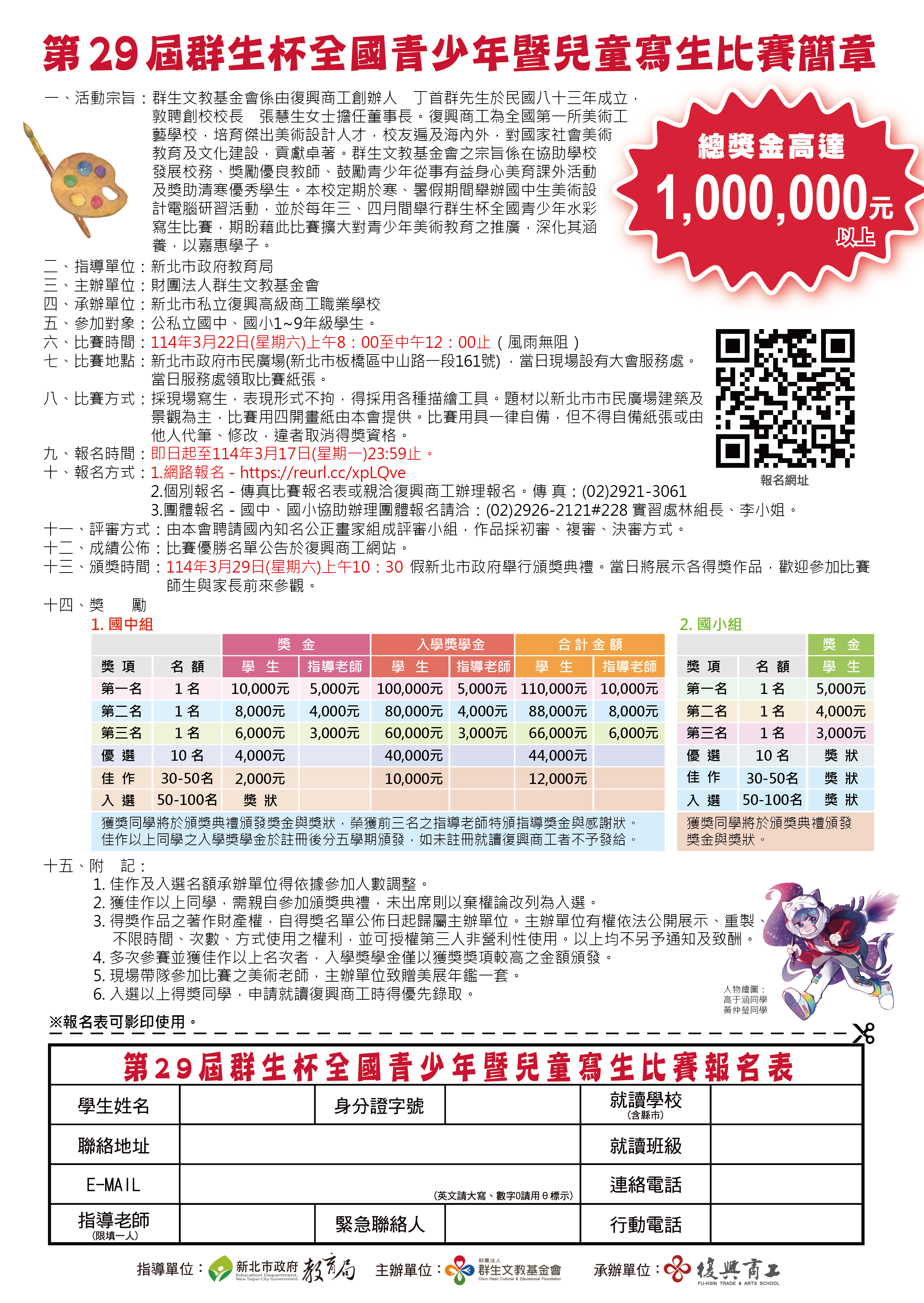 六、比賽簡章公告於群生基金會網站首頁 http://ischool.fhvs.ntpc.edu.tw /ischool/publish_page/193/,敬請下載查閱。