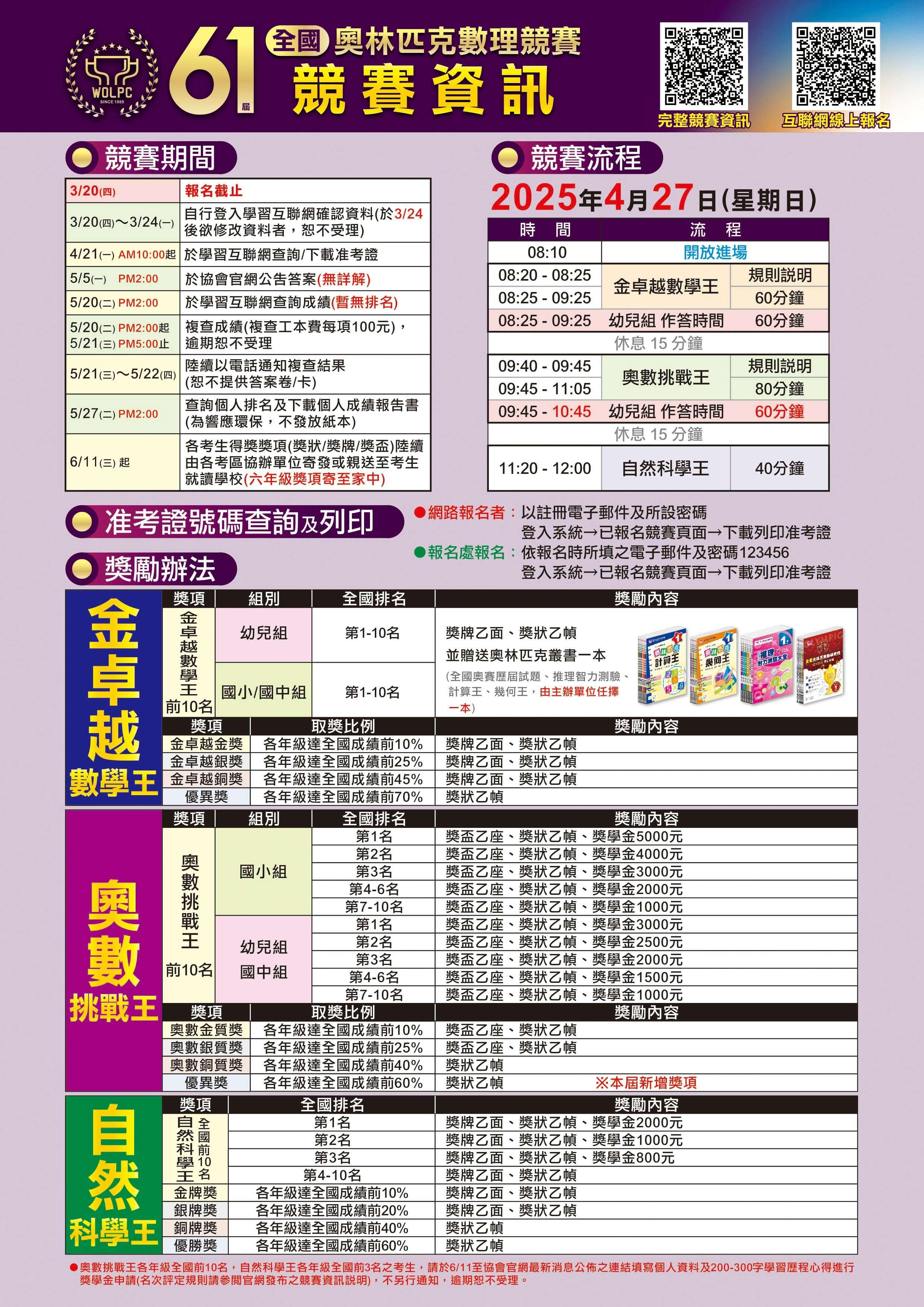 本競賽主要目的為:開發兒童及青少年之腦力,並培養其 獨立思考的能力,提升其創意思考,以培養學習數學的興 趣。