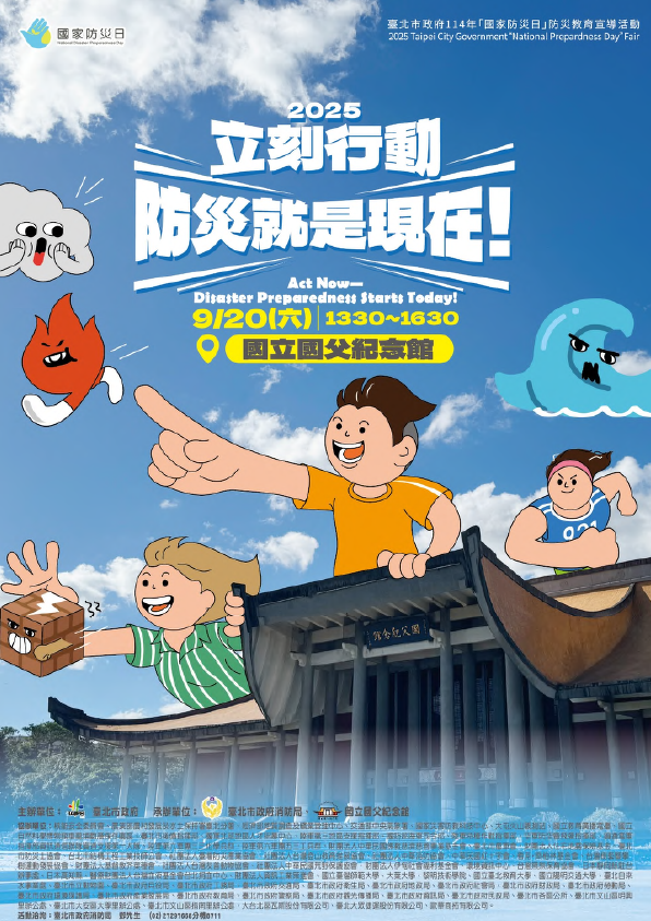 114年「國家防災日」防災教育活動訂於114年9月20日(星期六)下午1時30分至4時 30分於國父紀念館舉行
