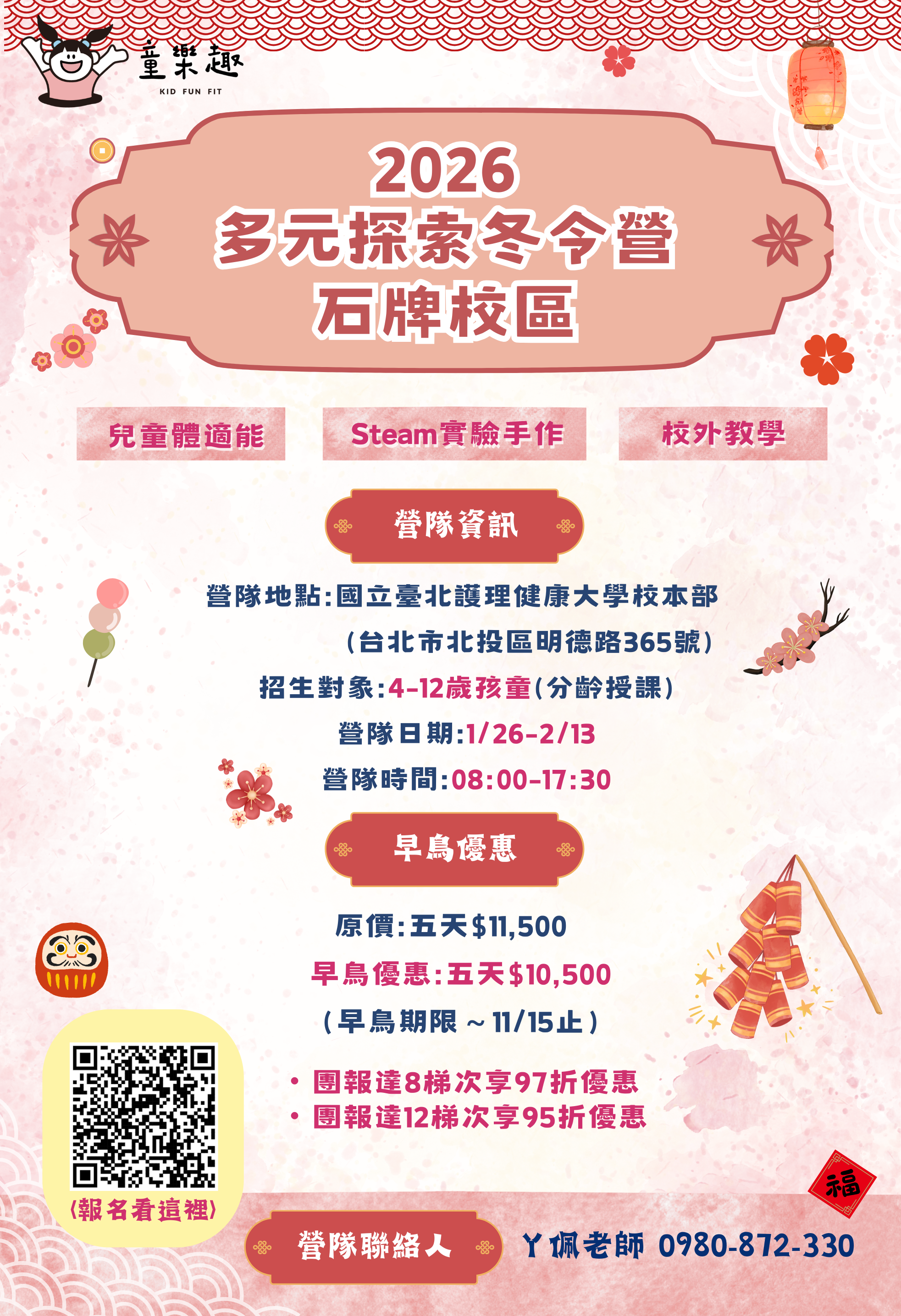 一、本校推廣教育中心與童博健康管理工作室合作開辦「2026 兒童多元探索冬令營」即日起受理報名。