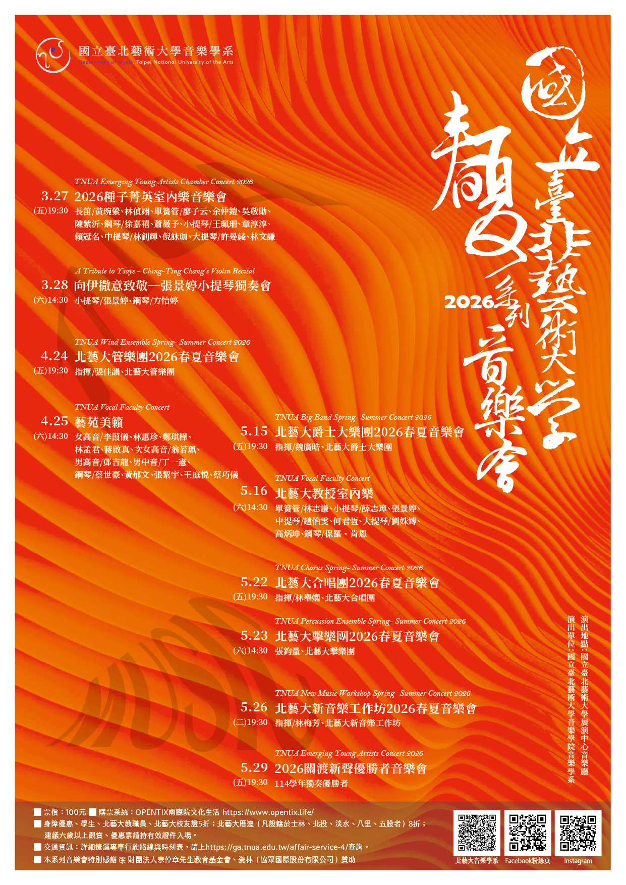 三、相關活動訊息請至北藝大音樂學系網站(https://music. tnua.edu.tw) 查詢。